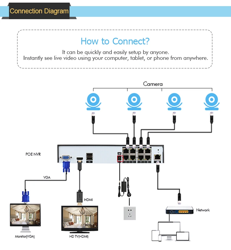 POE NVR = NVR + POE Switch , Plug And Play and easy setup.