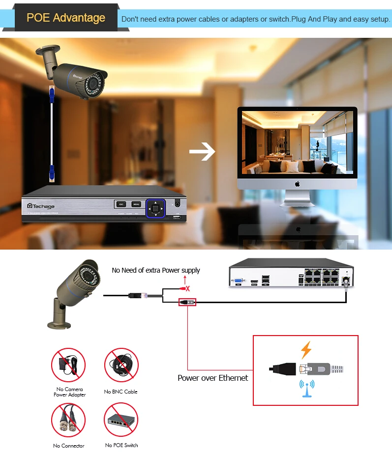 Techage 48V POE CCTV System