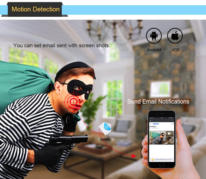 The motion detection recording function: when motion is detected the DVR will save the footage into hard disk without missing any important events. You can even ensure that false alarms are avoided by setting the motion detection “mask” to block areas with constant movement.