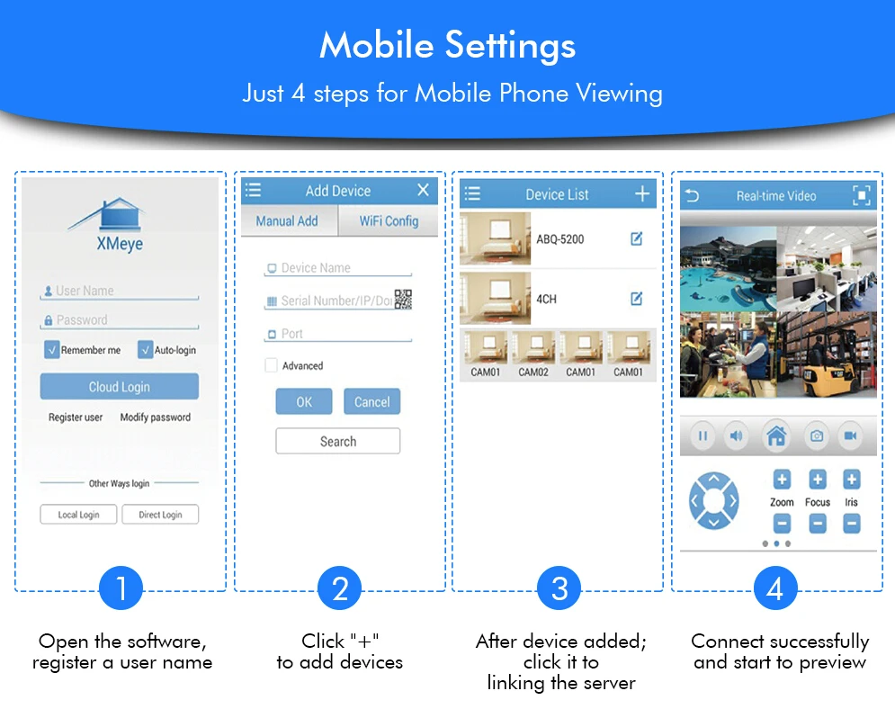 9) Support visit by smart phone , only download "XMEYE" APP on your phone