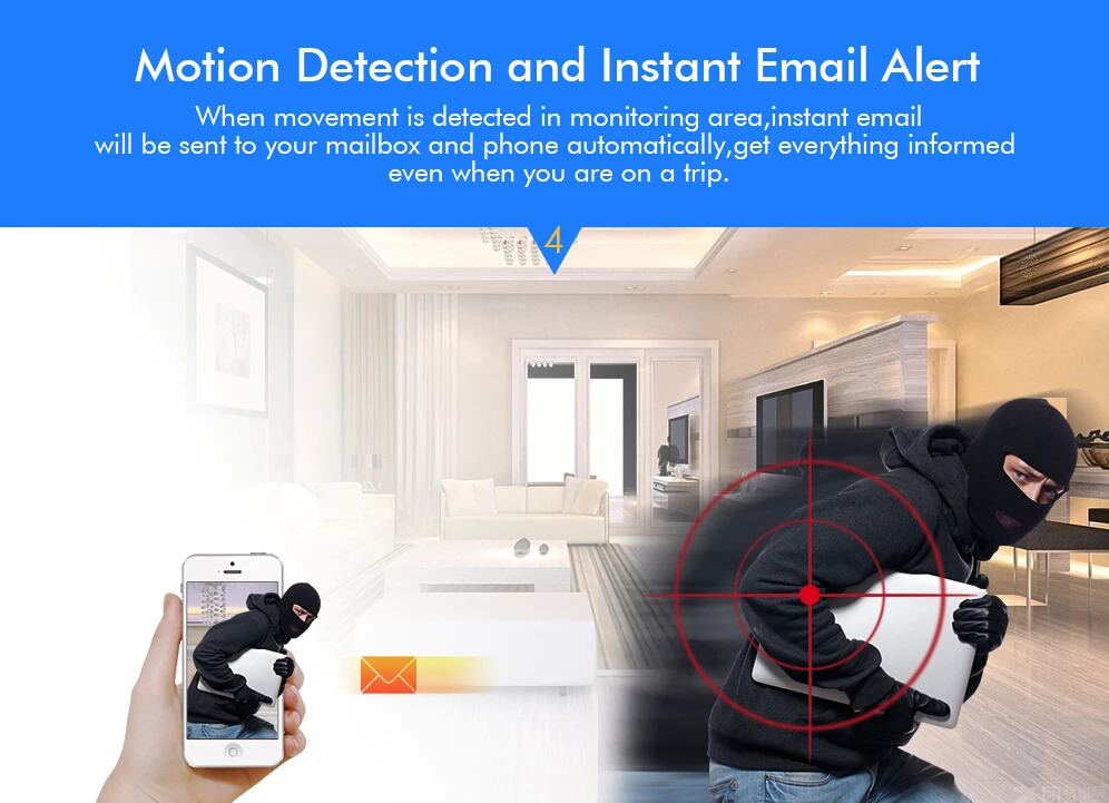 The motion detection recording function: when motion is detected the DVR will save the footage into hard disk without missing any important events. You can even ensure that false alarms are avoided by setting the motion detection “mask” to block areas with constant movement.