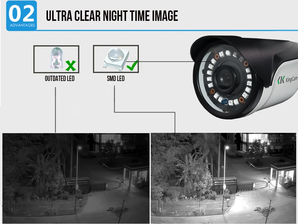 1080P Full HD IP security camera captures beautiful and smooth 2-megapixel videos and images. With the advanced pixel technology, you view sharper, and clearer images than traditional 720p HD, or even 960p Full HD cameras. Never miss a single detail of your loved ones with the Kingcam IP network camera
