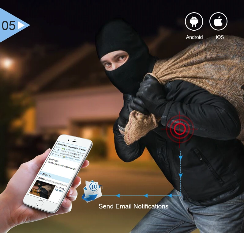 Based on P2P (peer to peer) technology, support plug-and-play installation. Access the IP camera through its web interface via Internet Explorer, Chrome, Firefox, also comes with a free smartphone App (Android & iPhone) for remotely view from anywhere.