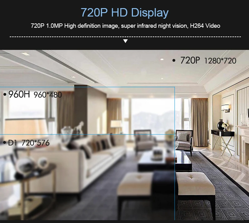 720P 1.0MP High definition image, super infrared night vision, H264 Video