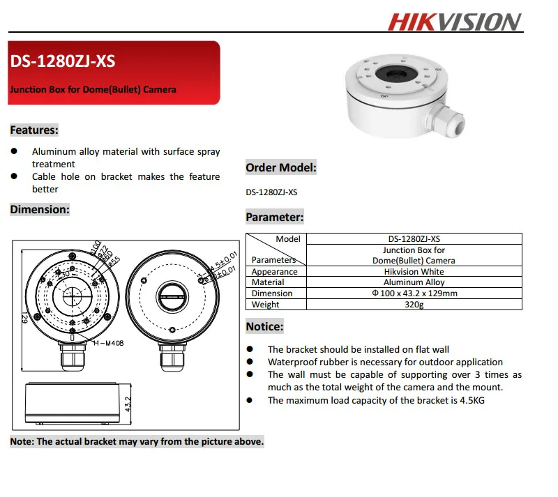 On-time Delivery: If you do not receive your purchase within 60 days, you can ask for a full refund before order completion (when you click "Confirm Order Received" or exceed confirmation timeframe).Big Deals Hikvision Original CCTV Camera Bracket DS-1280ZJ-XS Aluminum alloy material Junction Box for Bullet Mini Dome CCTV Cameras
