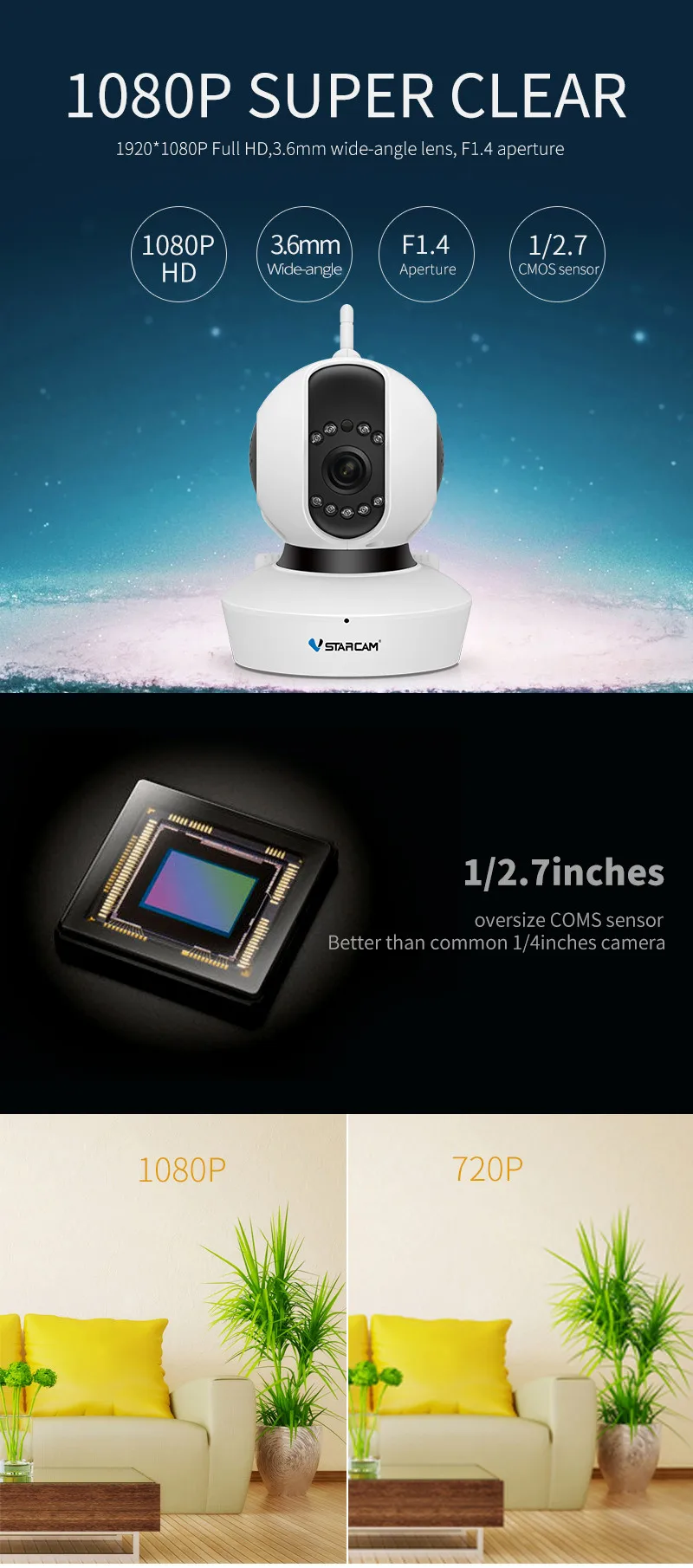 On-time Delivery: If you do not receive your purchase within 60 days, you can ask for a full refund before order completion (when you click "Confirm Order Received" or exceed confirmation timeframe).Big Stock Promo VStarcam C23S Wireless Security 2MP IP Camera Baby Monitor WiFi Network Pan Tilt Zoom PTZ 1080P Full HD home Surveillance CCTV