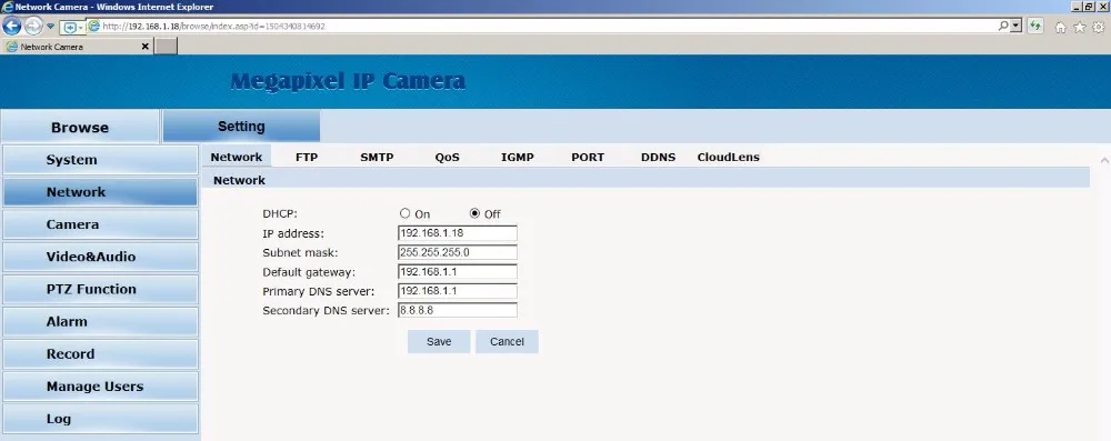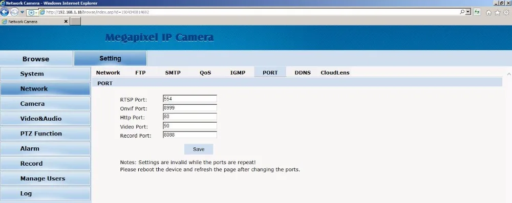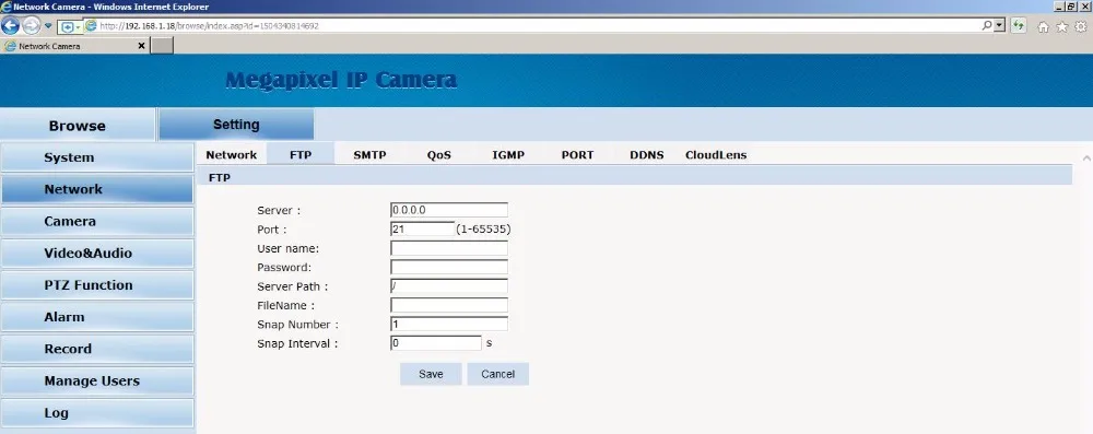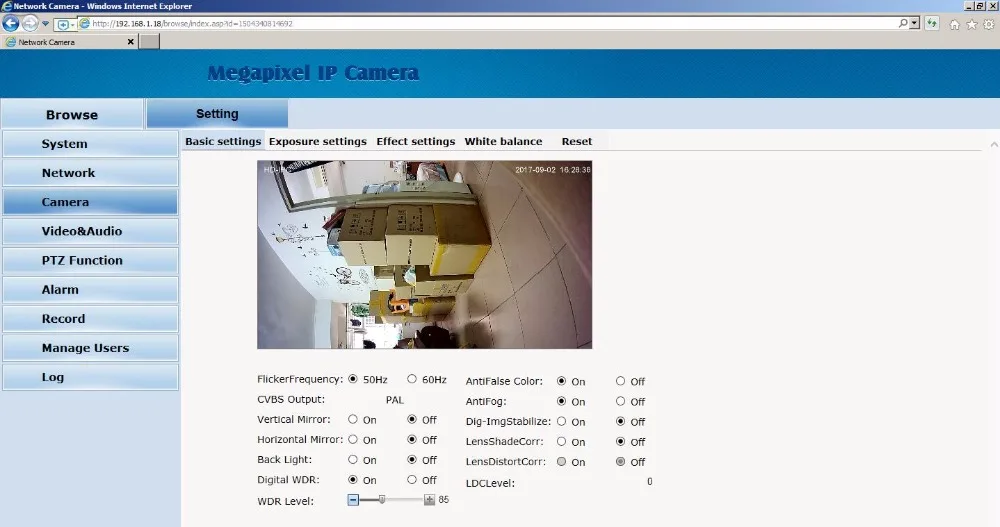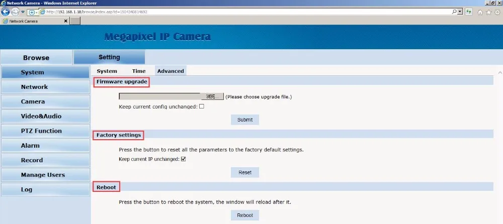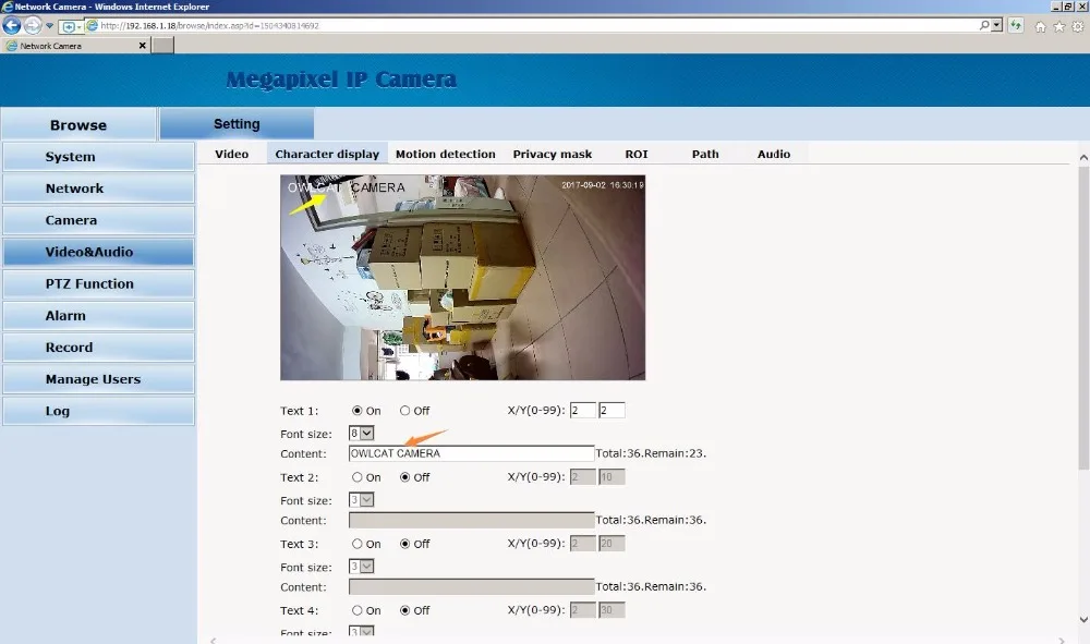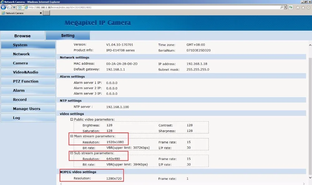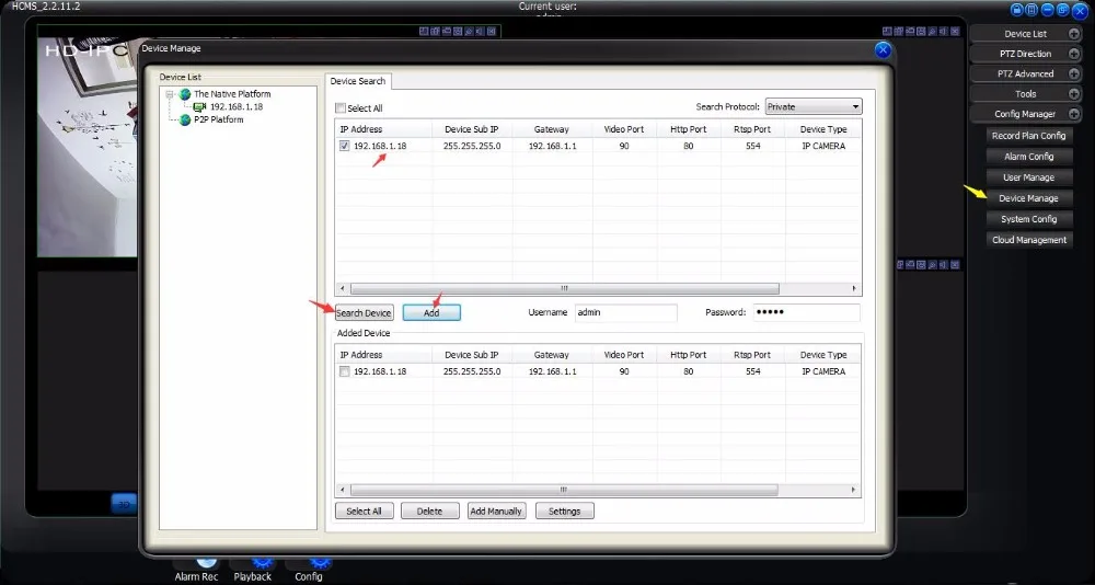 - Default ip address 192.168.1.18; User ID: admin; Password: admin