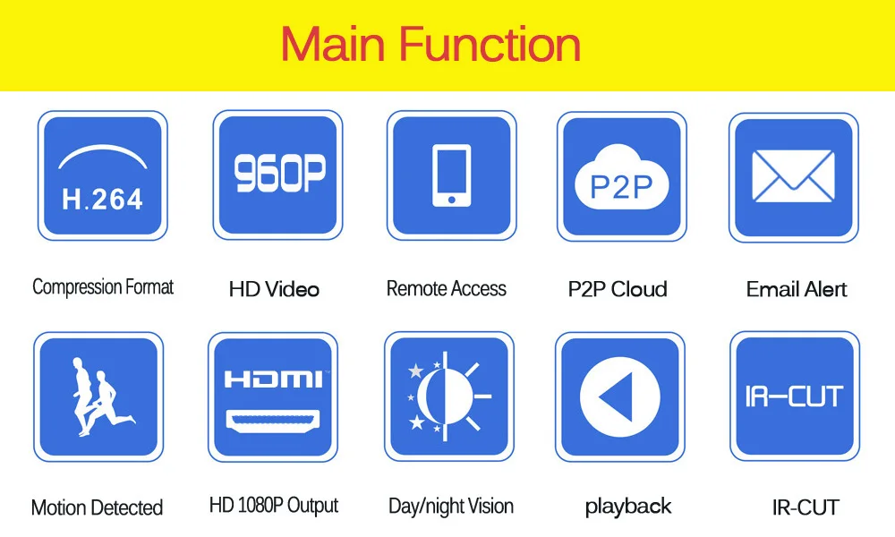 - hd 960p camera can install Outdoor/Indoor, free app for P2P Cloud function and storage, support android,iPhone,ipad,PC.