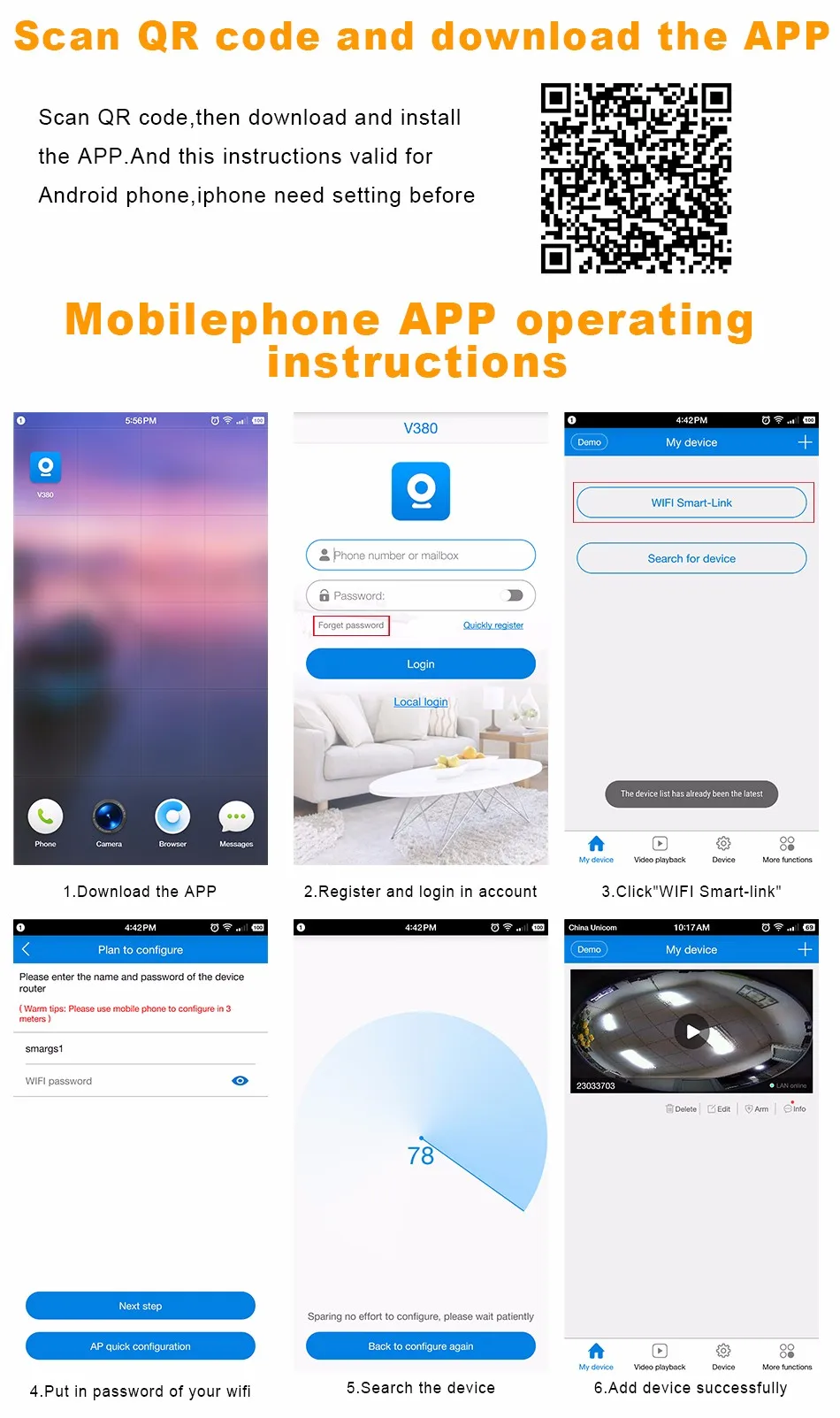 On-time Delivery: If you do not receive your purchase within 60 days, you can ask for a full refund before order completion (when you click "Confirm Order Received" or exceed confirmation timeframe).Big Stock Sale New arrival Mini VR IP Wifi Camera HD 960P 360 Degree Panoramic Network CCTV Security Camera IR Night Vision