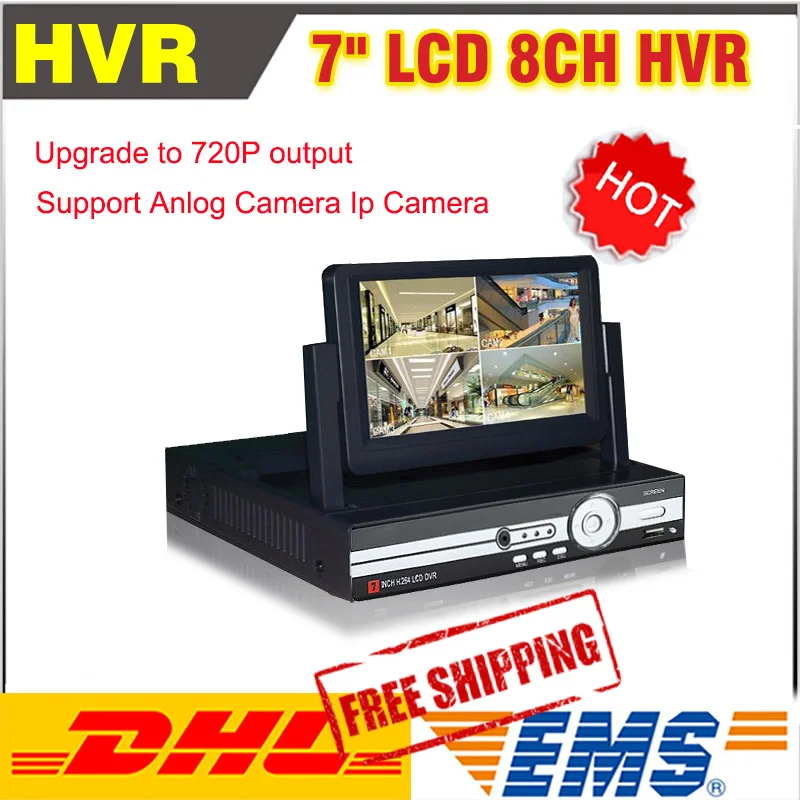Upgraded HD 720P Output, Support Analog Camera IP Camera AHD Camera Hybrid DVR/NVR/HVR All in One,The prices same favourable!!! 2015 7 INCH DIGITAL LCD 8 CHANNEL 720P OUTPUT AHD SECURITY SYSTEMFeaturer: