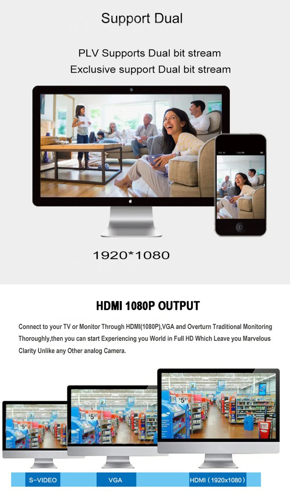 1ch VGA output,1ch HDMI output(support 1920*1080P)