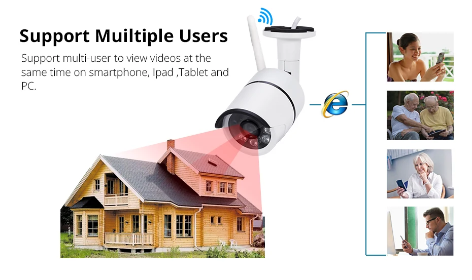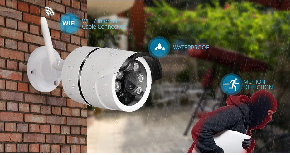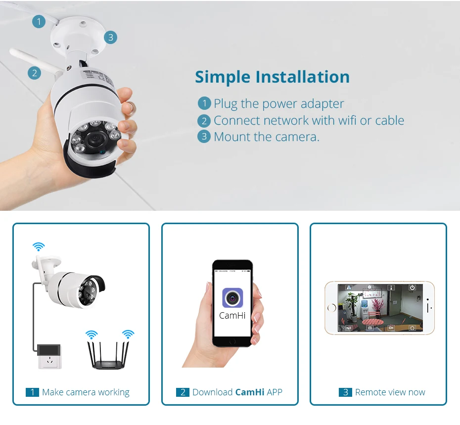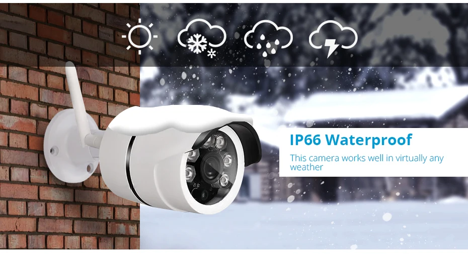 P2P plug & play IP camera; WIFI access to Internet; High Resolution; Two-way audio technology; Support up to 64G TF card for local recording; User and friendly APP&CMS free; Can be managed by other brand NVR & CMS via ONVIF; Camera ID can be detected automatically within LAN; Camera automatically connects with WIFI by Smartlink function; Work as smart home station; The brightness contrast saturation and chroma can be adjusted; Triple protection, more security; IP 66 Level Waterproof weatherproof.Speification:
