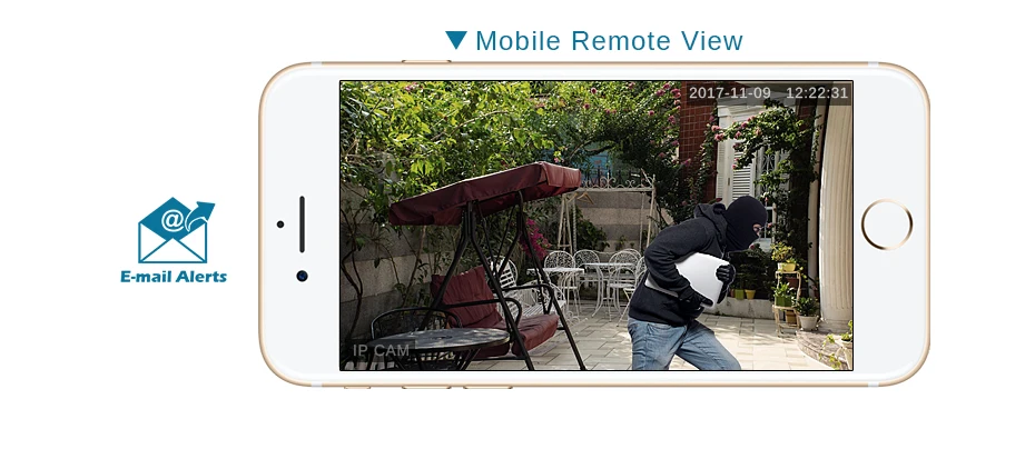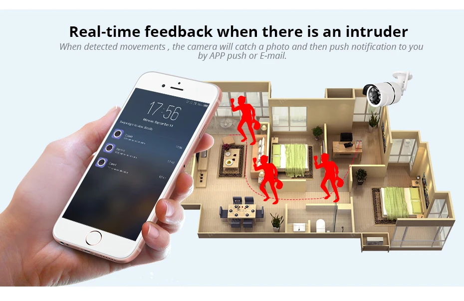 Supply voltage: AC100-240 Image quality: 1280X720 MP HD Lens: 3.6mm wide-angle lens Audio output: Built-in voice speaker Alarming way: App push/FTP Photo/Email photo Working temperature: 0°C ~ 55°C Working humidity: 10%~80% TF card: maximum 64GPower consumption: 5W Package :1 x ip Camera