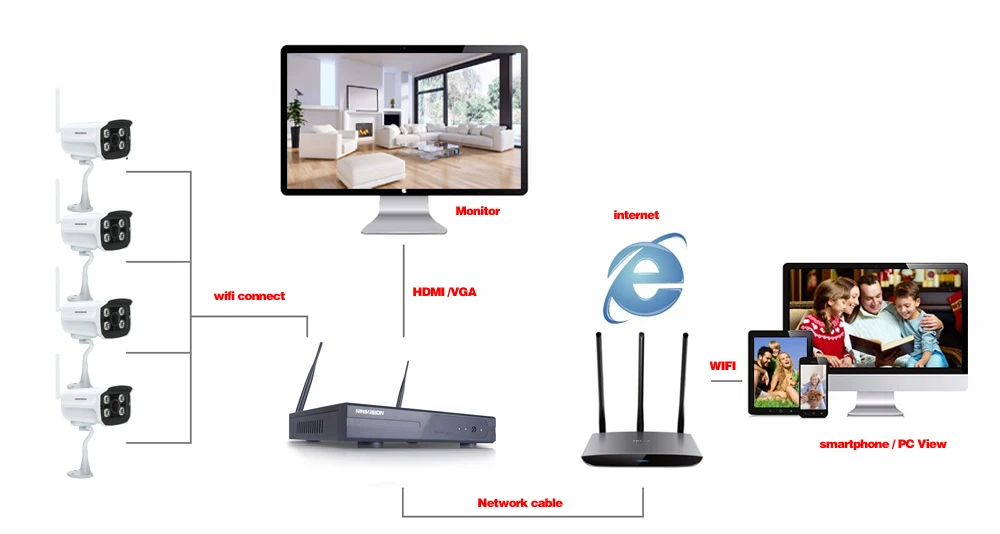 The Wireless cctv security system is plug and play ,easy to set up,Making lift more easier.Remote viewing anywhere anytime.