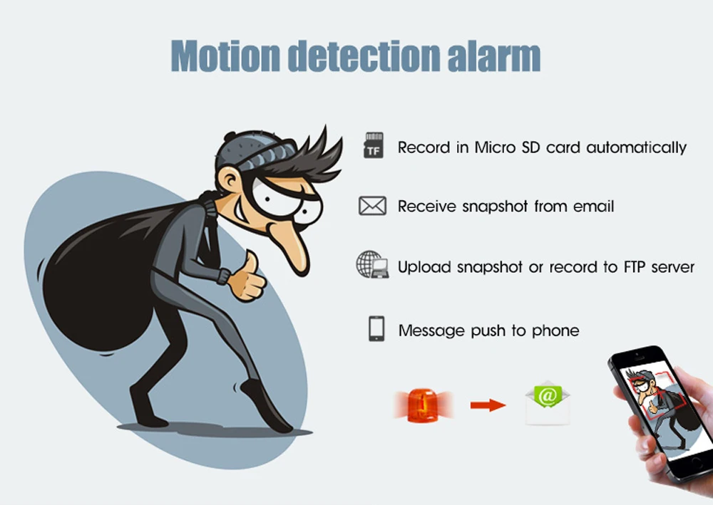 | Alarm linkage | Alarm send pictures to the specified mailbox; alarm upload pictures to the FTP server; alarm image and record write Micro SD card | |