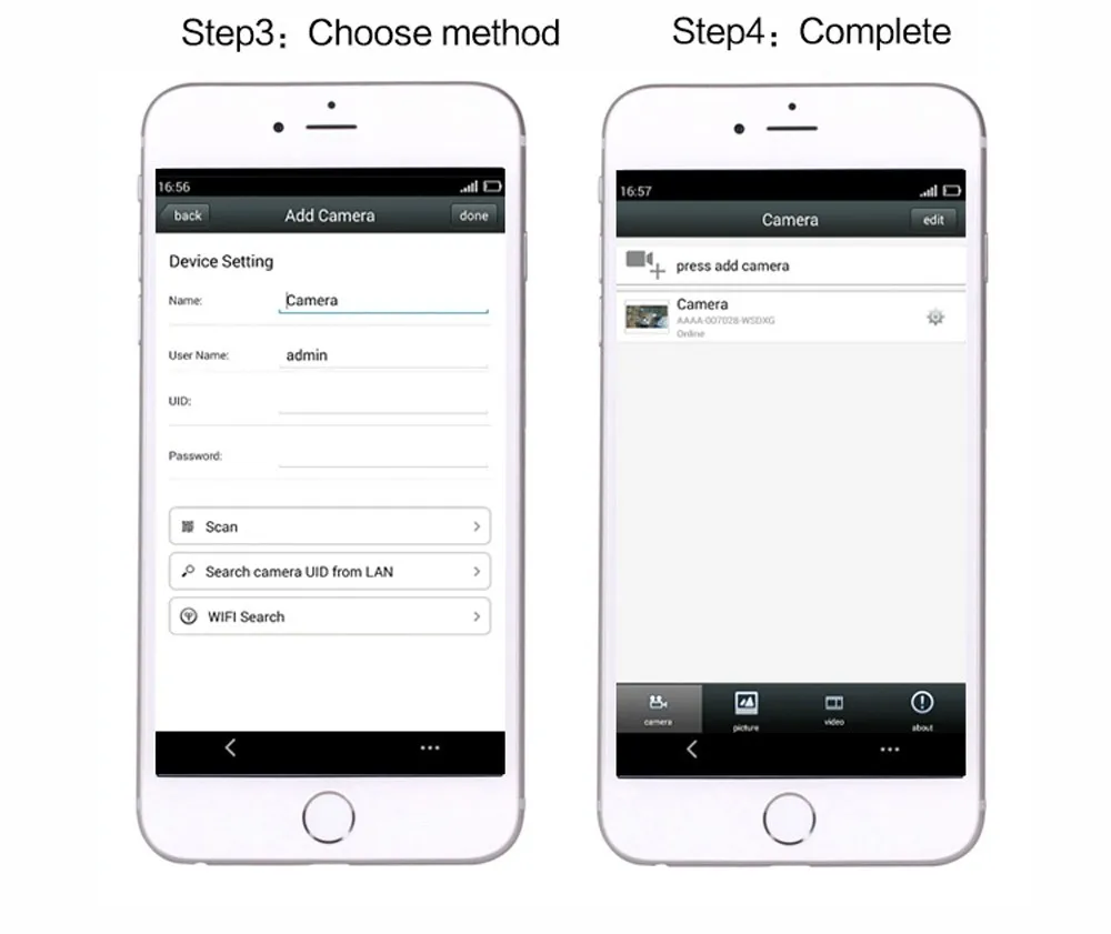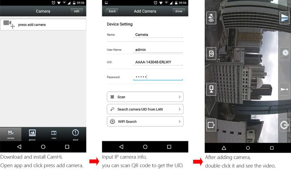 Provide android & ios APP(CamHi) and multi-channel CMS PC client software.