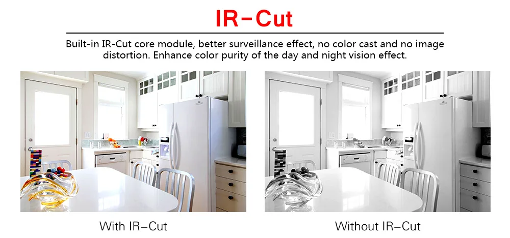 | Night vision distance | 22pcs 850nmΦ5mm IR LEDs. IR irradiation distance 20m | |