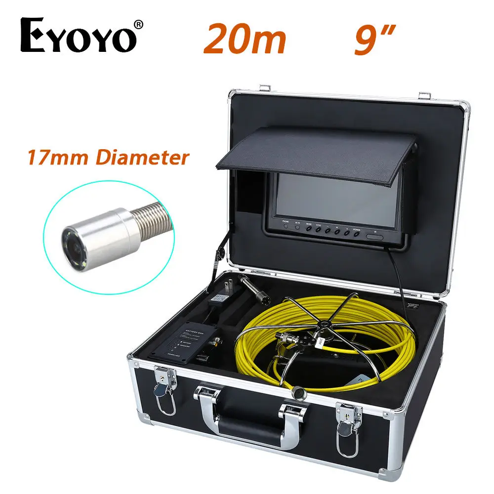 Eyoyo 20M 9" LCD 17mm Wall Drain Sewer Pipe Line Inspection Camera System CCTV Cam 1000TVL Snake Inspection Color HD Sun shield
