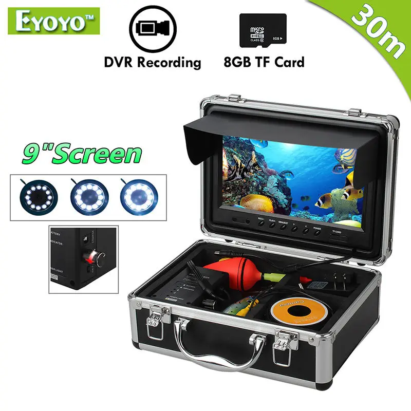Eyoyo Original 30M Fishing Camera Underwater Fish Finder 9" LCD Monitor HD 1000TVL Video Camera DVR Video Recording White LED