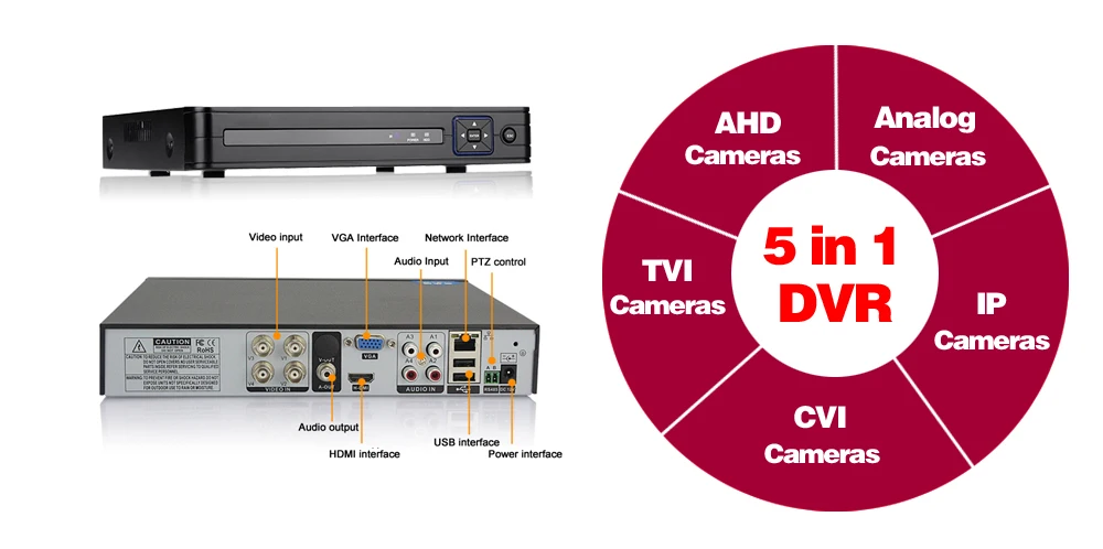 AHD DVR Compatibilty Support:Analog Camera / AHD Camera / TVI Camera / CVI Camera / IP Camera.