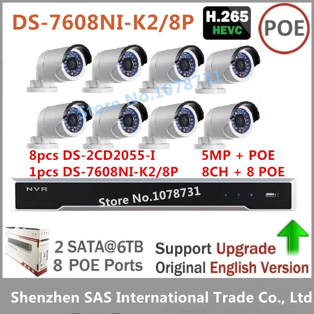 Big Stock Discount 8pcs Hikvision DS-2CD2055-I 5MP Bullet Camera IP Camera CCTV + Hikvision NVR DS-7608NI-K2/8P 2SATA, 8 POE ports 8ch Play H.265 remote cctv Rating: 3.3 out of 5