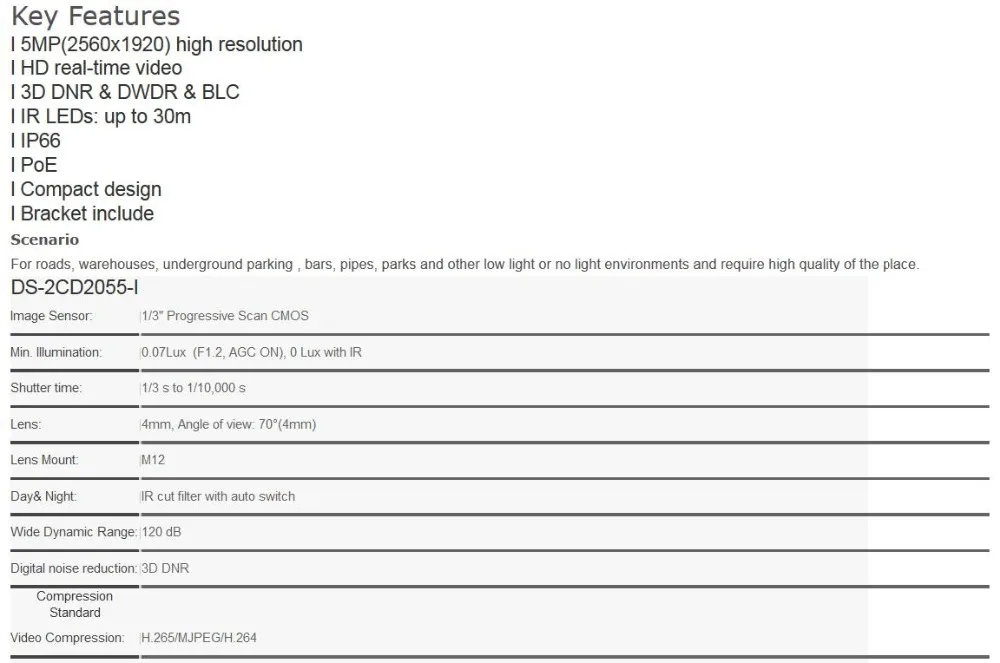 HIKVISION DS-2CD2055-I IP Camera 5MP H.265 PoE Mini bullet outdoor Network security CCTV CameraModel:DS-2CD2055-I