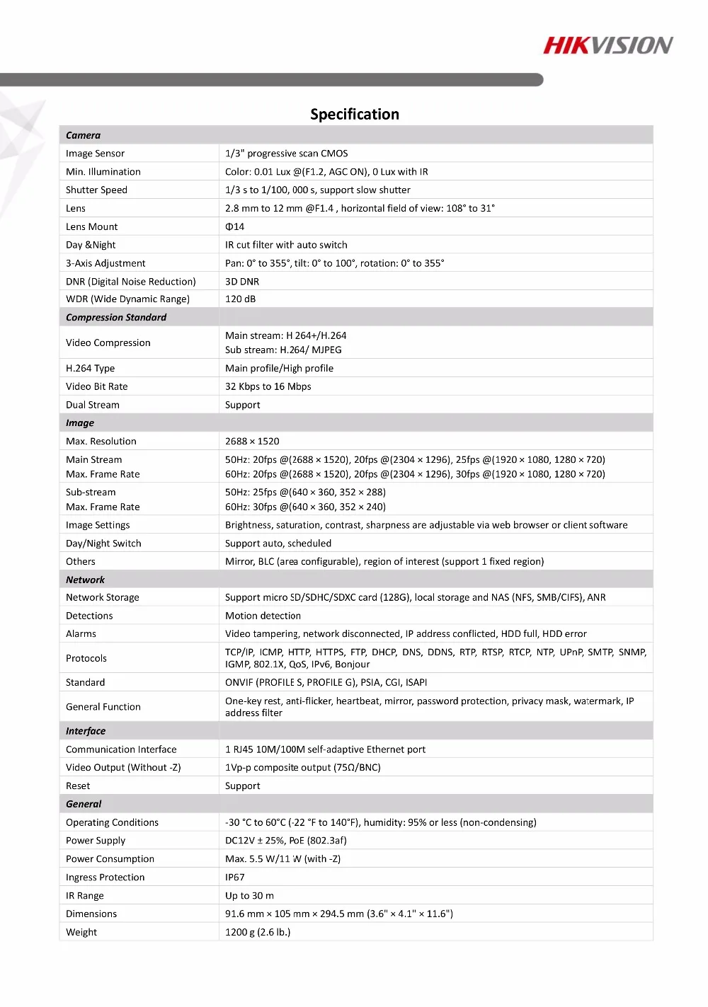 On-time Delivery: If you do not receive your purchase within 60 days, you can ask for a full refund before order completion (when you click "Confirm Order Received" or exceed confirmation timeframe).Fast Discount Hikvision English Version DS-2CD1641FWD-IS 2.8-12mm Varifocal POE 4MP 1080P Real Time Video IR Bullet Network CCTV IP Camera