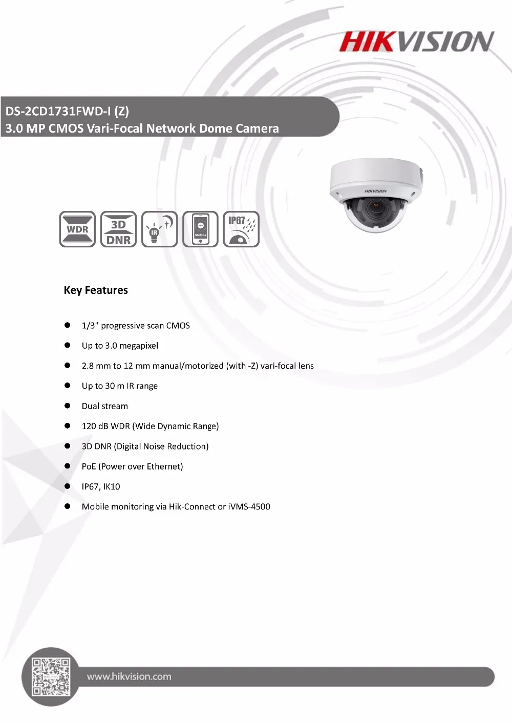 CCTV Security Cameras Product Store Choice Collections provide security camera,remote cctv, spy camera Hot Deals Hikvision Original English CCTV Camera DS-2CD1731FWD-IZ 2.8-12mm Motorized VF lens 3MP Dome IP Camera POE IP67 IR30m Upgradeable. Price at this time US $854.00/lot. Check price now to get discount! Dont waste your time. Buy Now only in Shenzhen SAS International Trade Co., Ltd. Trusted Seller Store!