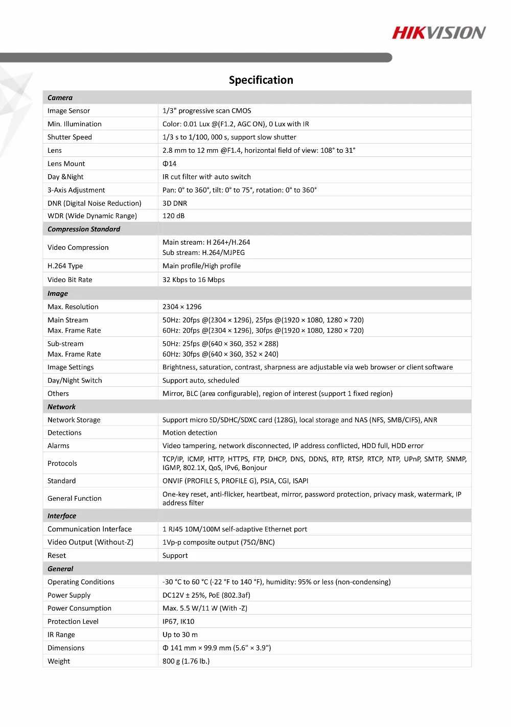 On-time Delivery: If you do not receive your purchase within 60 days, you can ask for a full refund before order completion (when you click "Confirm Order Received" or exceed confirmation timeframe).Hot Deals Hikvision Original English CCTV Camera DS-2CD1731FWD-IZ 2.8-12mm Motorized VF lens 3MP Dome IP Camera POE IP67 IR30m Upgradeable