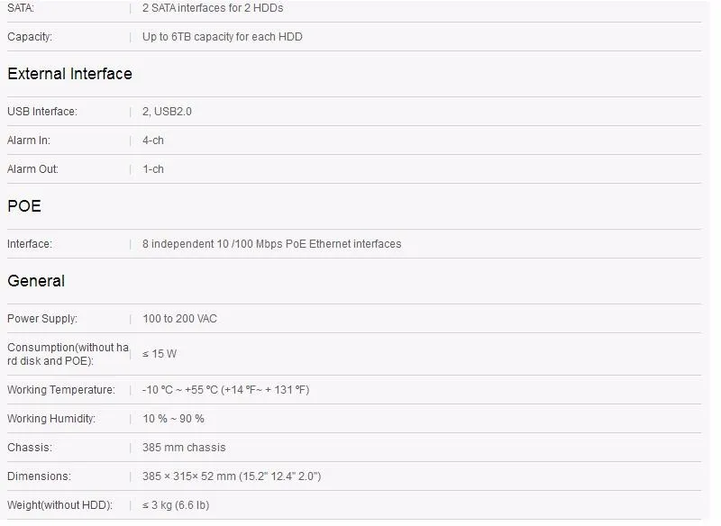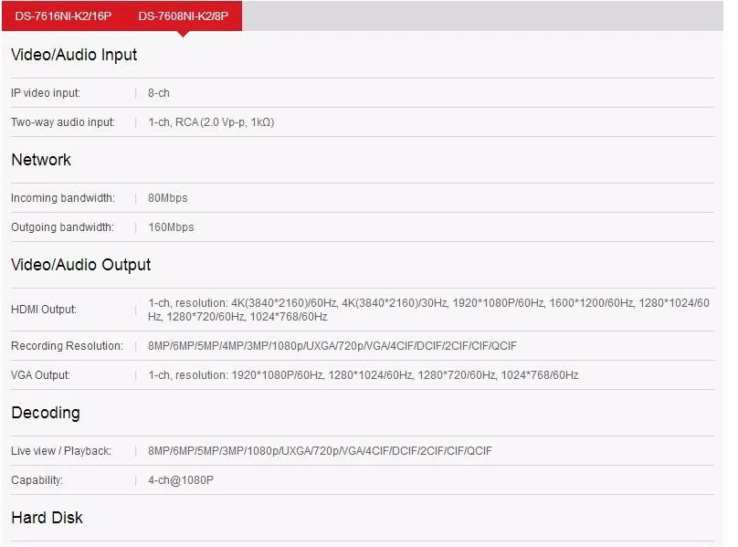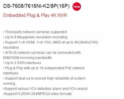 Hikvision English Version DS-7608NI-K2/8P Embedded Plug & Play 4K NVR Support H.265 2SATA 8MP Resolution Recording 8POE 8CH Network