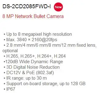 Hikvision Original English Version Surveillance Camera DS-2CD2085FWD-I