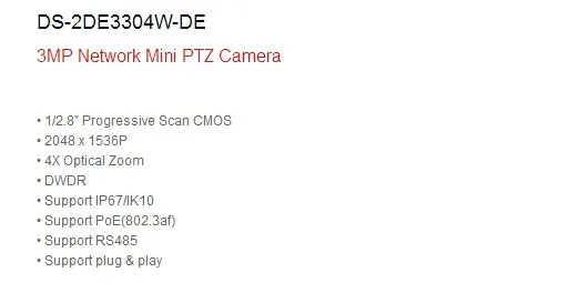 Wonderful Limited Hikvision Original English Version DS-2DE3304W-DE 3MP Network Mini PTZ IP Camera 4X Zoom IP66 PoE Security CCTV remote cctv Rating: 5 out of 5
