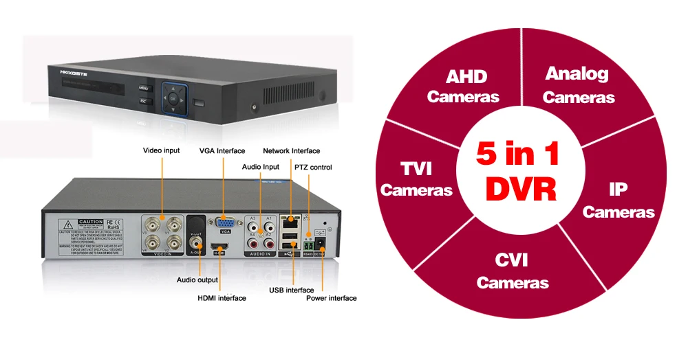 You can freely enjoy five connection modes with this one multi-function digital video recorder.AHD(Analog High Definition)is new advanced technology on home security with 5 recordering modes.for your option:Analog / Network / TVI / CVI / AHD+Network. You can get HD quality video in each mode.
