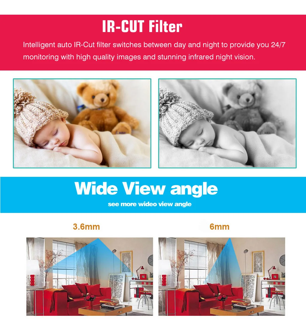 - 720P/960P/1080P High Definition and Video at day and night. Email alerts and Motion detection!