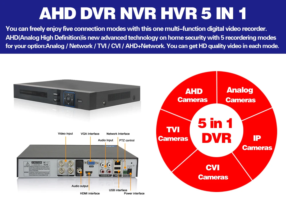 On-time Delivery: If you do not receive your purchase within 60 days, you can ask for a full refund before order completion (when you click "Confirm Order Received" or exceed confirmation timeframe).Fantastic Sale 4Ch Full HD 1080N AHD-NH Real time 4 Channel CCTV 720P AHD DVR AHD-M Hybrid DVR NVR 5in1 Video Recorder For AHD&IP&Analog Camera