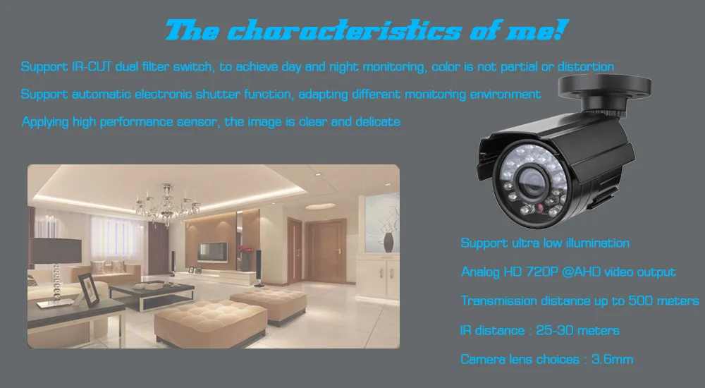 - 4pcs HD AHD 720P CCTV Cameras;