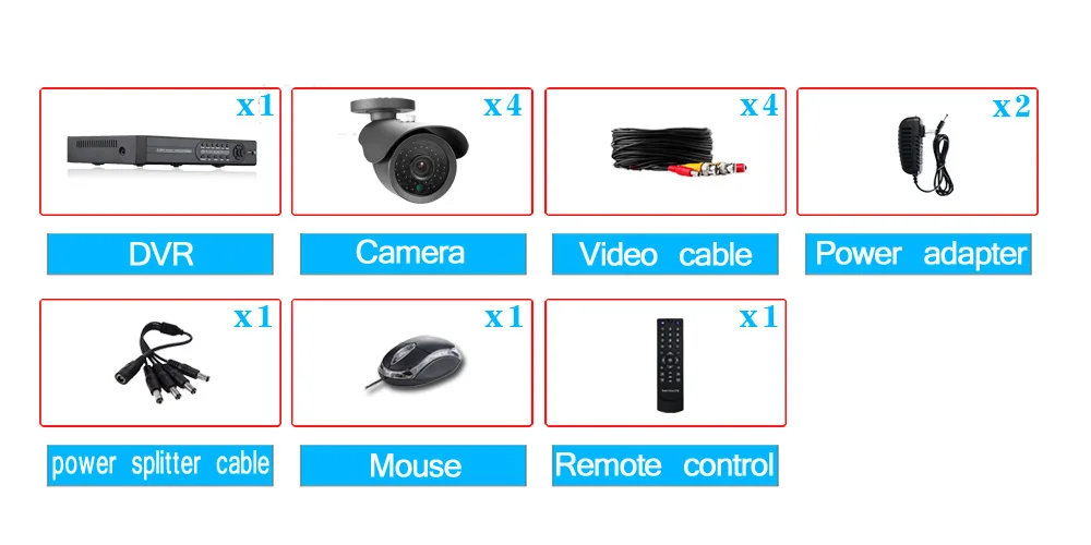 - 4 x AHD 1080P 2.0MP 1/3" inch indoor outdoor IR Day Night vision cameras
