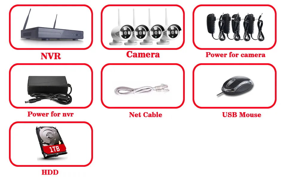 - 1 x 4-Channel Wireless NVR Video Recorder