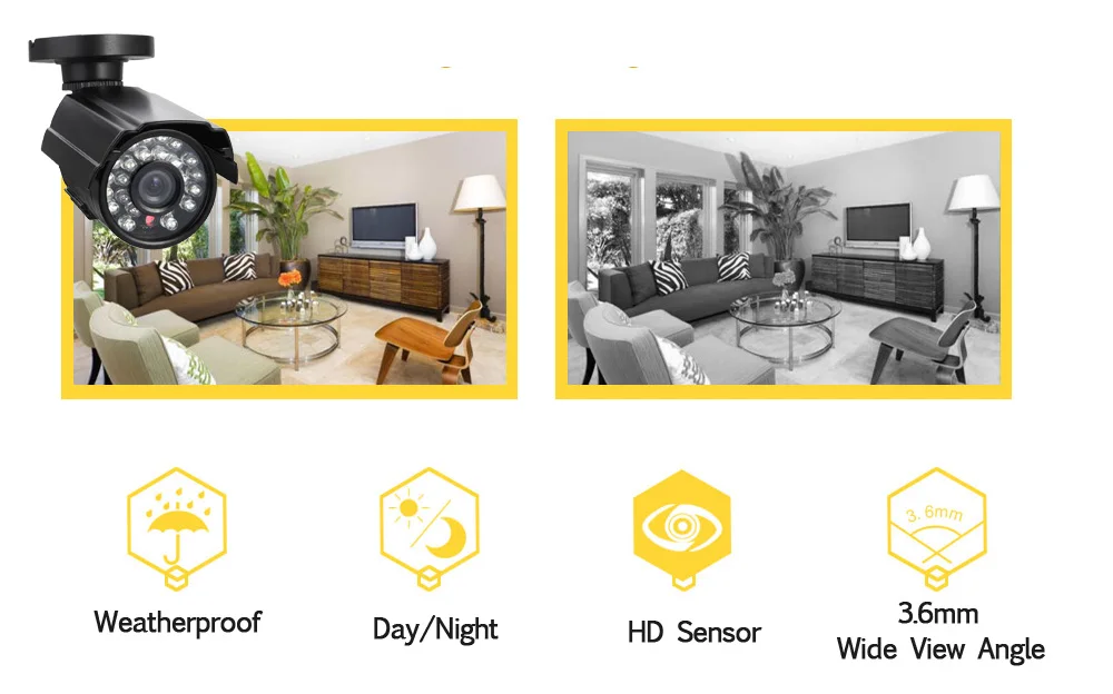 - 8 x 900TVL indoor outdoor IR Day Night vision weatherproof cameras
