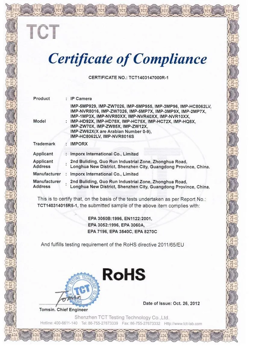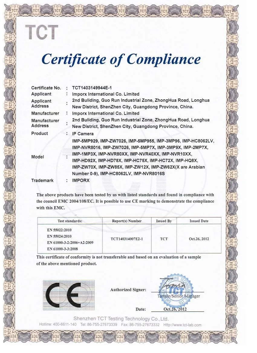 Protocols | TCP/IP, HTTP, DHCP, DNS, RTP/RTCP, RTSP, PPPoE, SMTP, NTP (FTP, SNMP optional) |