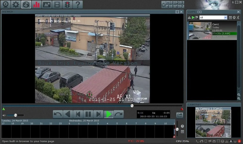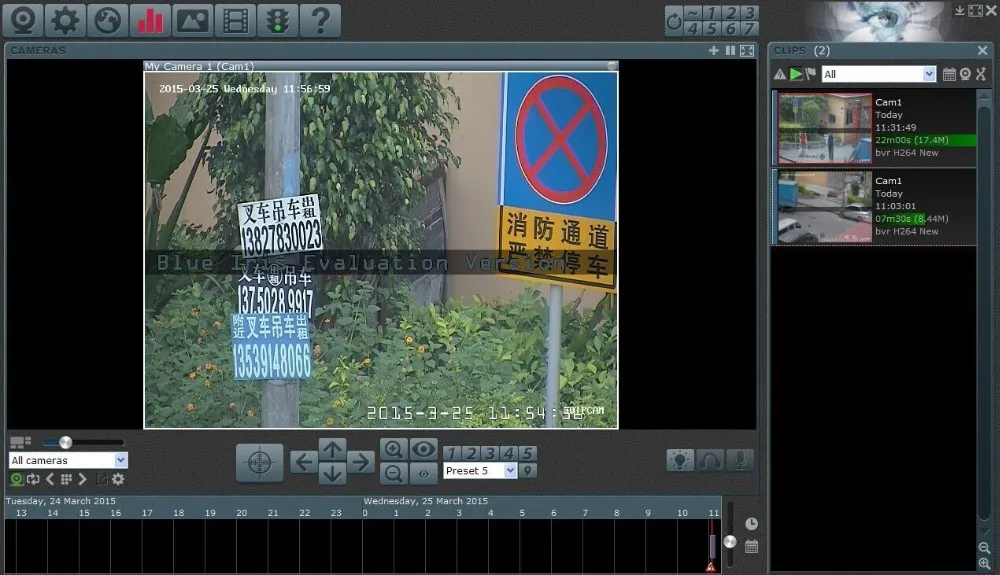 Camera Control | Pan/Tilt, Zoom, Focus, Click centering, Zoom by mouse dragging, Iris, preset calling and programming, auto mode |
