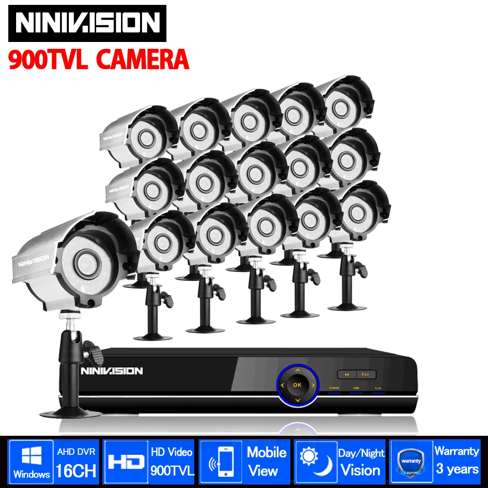 - 16pcs 900TVL CCTV Cameras;