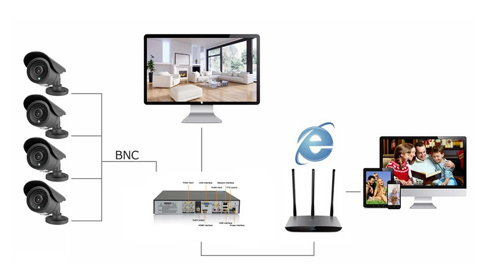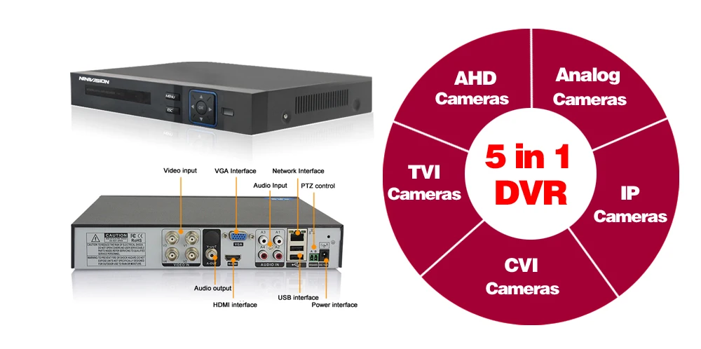 You can freely enjoy five connection modes with this one multi-function digital video recorder.AHD(Analog High Definition)is new advanced technology on home security with 5 recordering modes.for your option:Analog / Network / TVI / CVI / AHD+Network. You can get HD quality video in each mode.