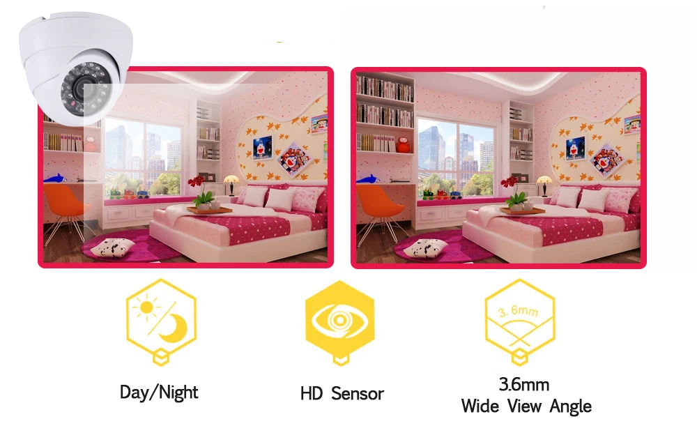 - 3.6mm Wide Viewing Angle lens each camera comes equipped with a 3.6mm wide angle lens,providing a broad perspective.