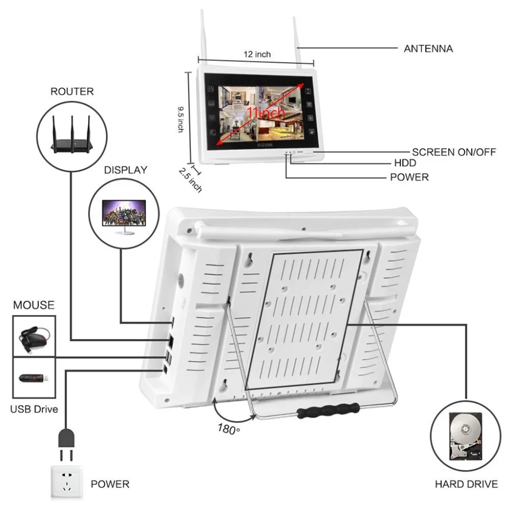 1 PCS * 4CH 960P WIFI NVR with 11inch Monitor (not include hard disk)