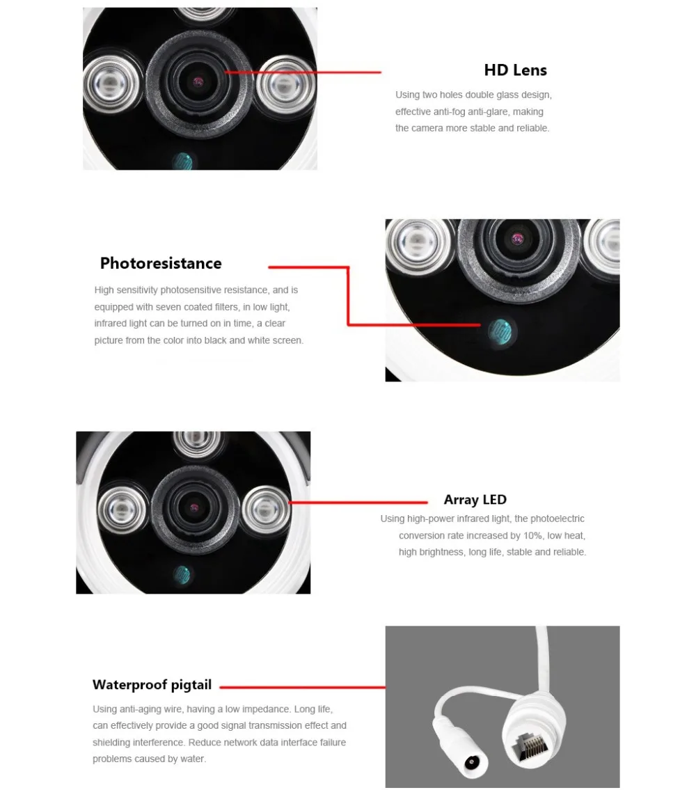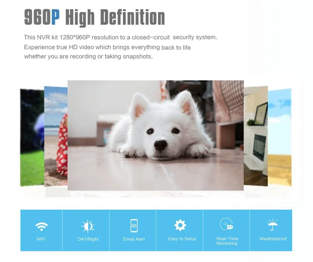 Each IP camera delivers 960p megapixel at 1280 x 960 pixels with sharper and larger image and video than 960p security cameras.