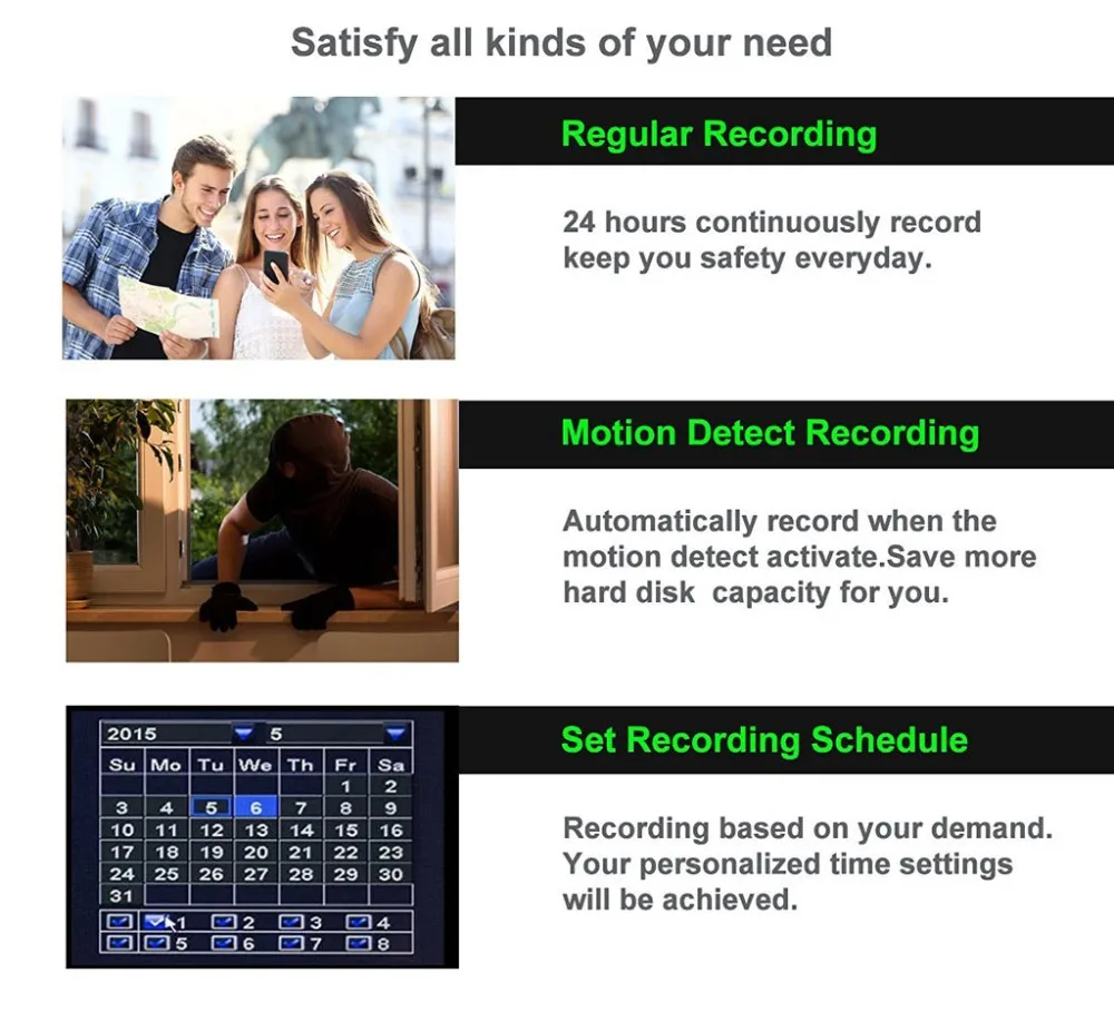 Our NVR provides HDMI&VGA output ports. Connect your TV or monitor to the corresponding port. Either way, you are guaranteed with crystal clear video of your home and office.